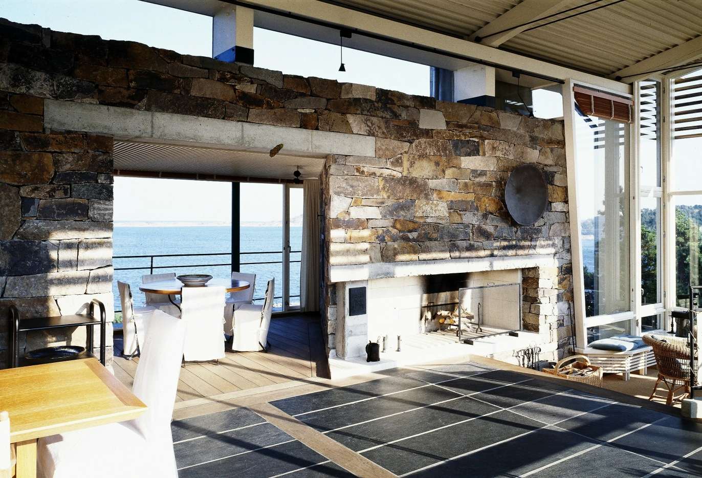 NATUR: Veggen mot øst er bygget i stein, og gjennom panoramavinduene kan kongefamilien følge med på skipsfarten utenfor hytta. Foto: Jiri Havran