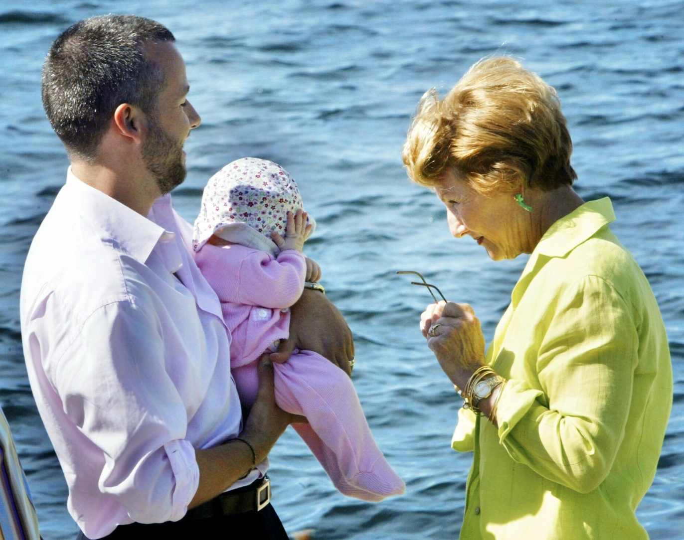 HJERTEKNUSER: Dronning Sonja var fra seg av begeistring da Ari Behn kom på besøk med barnebarnet Maud Angelica Behn. Foto: NTB