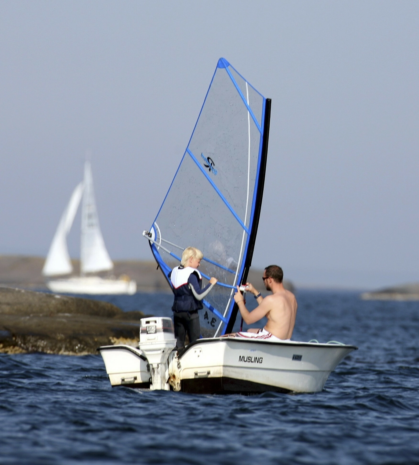 BONUSPAPPA: Kronprins Haakon lærer bonussønnen å seile. Norges kommende konge går inn i papparollen for fullt. Foto: Jan-Petter Dahl