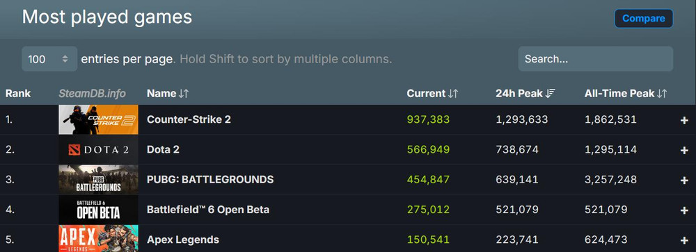 Ifølge SteamDB nådde den første av to planlagte betatester en topp på 521 079 samtidige spillere i helgen. Det holdt til fjerdeplass på Valves plattform, kun bak gigantene Counter-Strike 2, Dota 2 og PUBG.