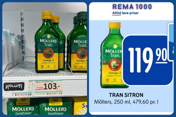 PRISFORSKJELL: Rema 1000 har sitron-tran i kundavisen, men blir slått på pris av Normal.