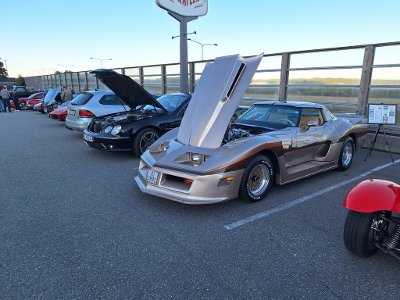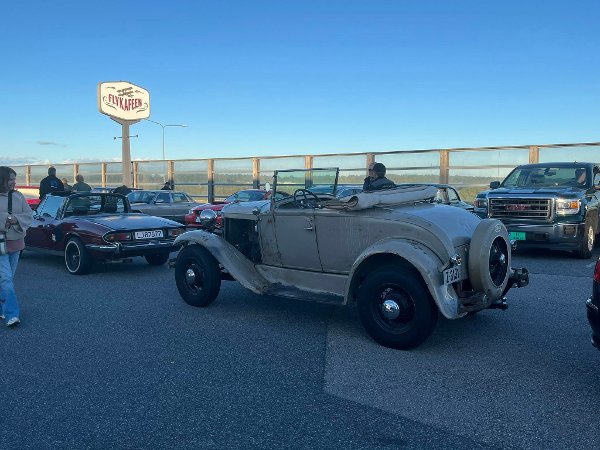 Mandager er parkeringsplassen utenfor Flykafeen forbeholdt hobbykjøretøyentusiaster fra fjern og nær. Etter kafeens stengetid fylles området opp med alle slags biler og årsmodeller, og det skrytes og ljuges om både det ene og det andre. Trolig aller mest om hestekrefter(!).