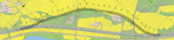 Kart med den planlagte traseen markert. Rasområdet er her i forkant av i bildet.