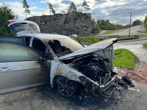 – Spredningsfaren her var høy, fordi bilen ligger nærme et hus, i tillegg til at det ligger et strømnett rett over bilen.
