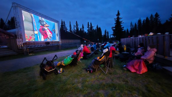 HUNDRE PÅ KINO: Rundt hundre personer så Flåklypa Grand Prix på utekino i Trysilfjellet torsdag.