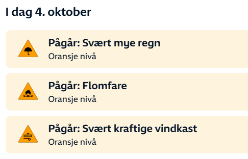 Disse farvarslene er fortsatt gjeldene hele lørdag.