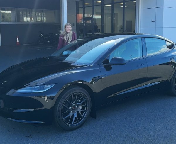Dette bildet tok Aleksander Østbye Myrvold av samboeren Birgitte Sørpoll da de nettopp hadde kjøpt ny Tesla. I natt fikk bilen gjennomgå.