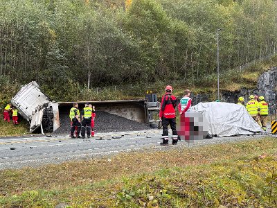 «Store materielle skader, trafikkdirigering på stedet. Både krimteknisk og ulykkesgruppa er på vei. Vegen vil være stengt en god stund. Ulykken har skjedd på østsiden av tunnelen. Skal være en sjåfør i hvert kjøretøy.»