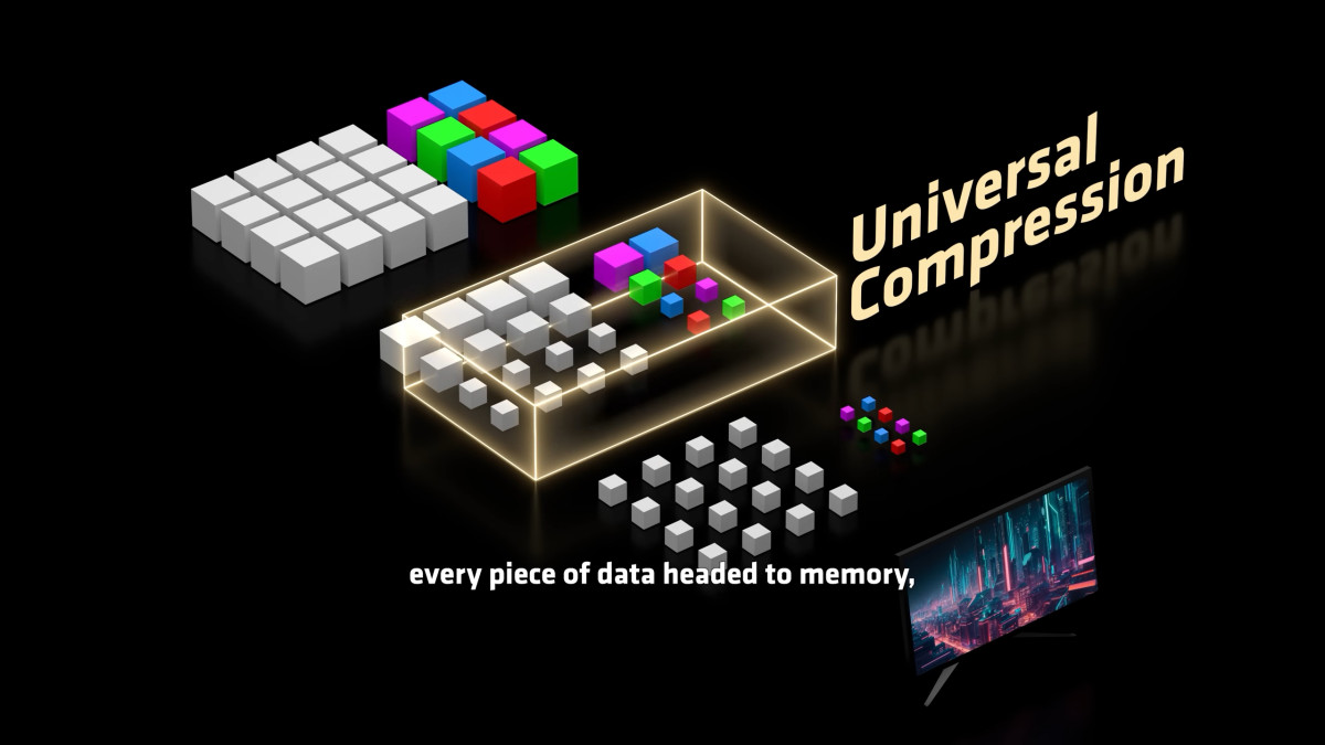 Den siste teknologien er «Universal Compression», et system som komprimerer all data som sendes til grafikkminnet – ikke bare teksturer, slik tilfellet er i dag.