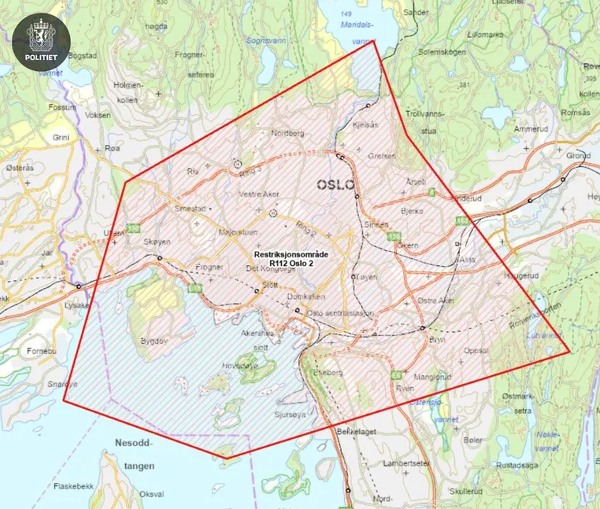 – Vær oppmerksom på at det fra klokken 18.00 torsdag 9. oktober til og med søndag 12. oktober klokken 11.00 vil det være et større luft restriksjonsområde enn det er til daglig i Oslo politidistrikt, skriver operasjonsleder Eirik Sannes.