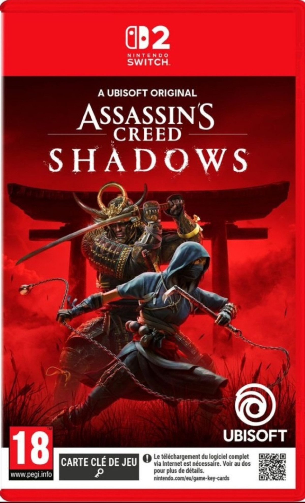 Lekkasjen viser et omslag for «Assassin’s Creed Shadows» til Nintendos nyeste konsoll. Omslaget visrt at esken inneholder et «Key Card», altså et fysisk kort som likevel krever at du laster ned spillet.