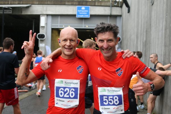 Kenneth Blom (til h.) og Tor Harald Bringedal kom helt fra Husnes for å delta på Tunnelløpet.