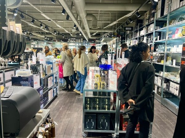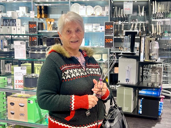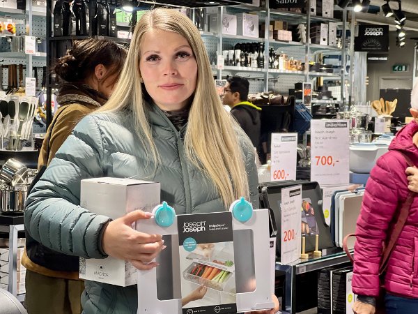 Rundt henne vrimler det med kunder som har spørsmål om stekepanner, vinglass og alskens duppeditter til kjøkkenet.