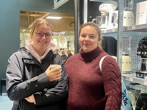 KLARE FORVENTNINGER: – I dag er vi her bare for å kikke, sier Malene og Linnea, som er enige om at Notodden godt kan ha en Kitchen-butikk, selv om det fra før av er en god del butikker som tilbyr redskaper til kjøkkenet. – Det er litt mer kvalitet her, men vi forventer også at de ansatte har mer kompetanse innenfor dette området, slik at de kan bidra til at vi som kunder gjør et godt kjøp.