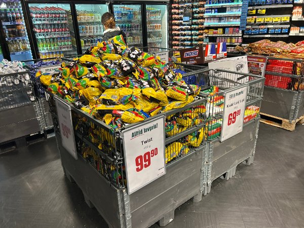 Giga-pakken med 400 gram Twist fra Freia er et veldig godt kjøp. Den koster 99 kroner, eksakt samme pris som for den mindre 300-gramspakken hos Kiwi, Rema og Extra