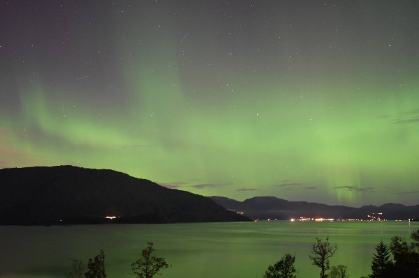 Også i Ænes, langt ute i Hardangerfjorden, er nordlyset synlig.