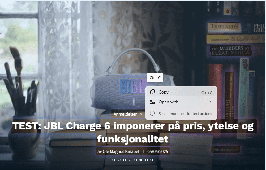 Skjermdump: Click-to-do lar deg kopiere tekst fra bilder på skjermen.