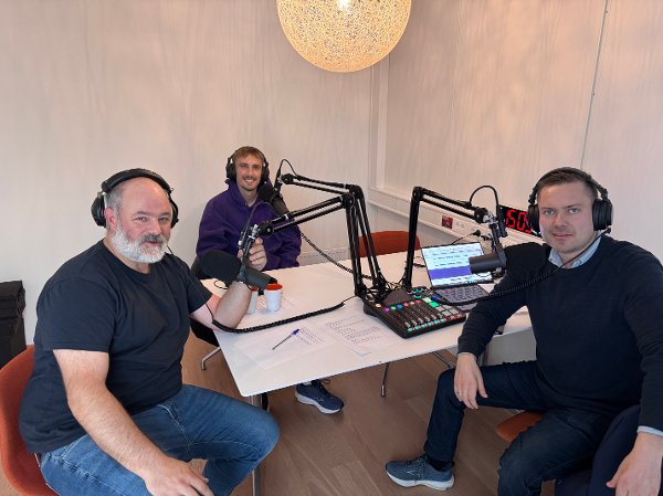 I STUDIO: Lucas Haren var gjest i denne ukens episode av «På ballen». Her sammen med Per-Erik Stømner og Jonas Krabseth.
