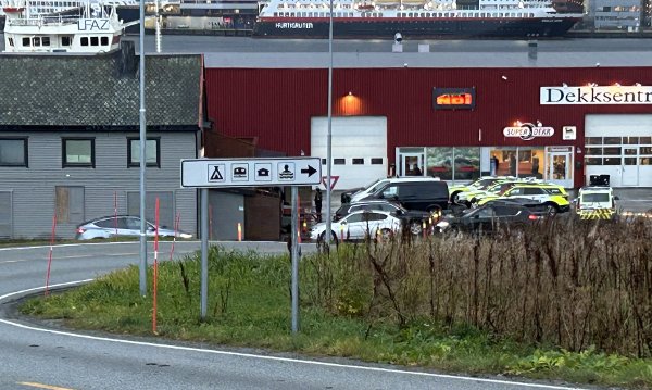 Flere politibiler står utenfor HA-lokalene i Tromsdalen.