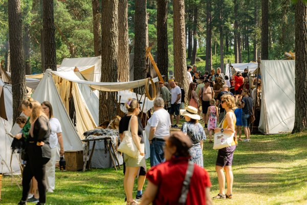 Mange tok turen til Landeparken for å få med seg vikingmarkedet og de andre aktivitetene under Olavsdagene 2025.