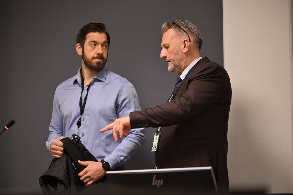 Aktor Per Øyvind Valland og etterforsker Vegard Lauritsen.