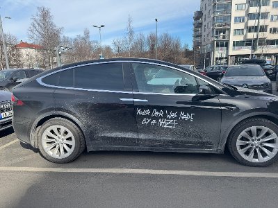 I mars fikk Karina Hollekim sin Tesla ramponert da den sto parkert på Bekkestua. På bilens ene side var det ripet inn «Your car was made by a nazi».