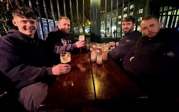 Mens Billy er Arsenal-fan og omtaler seg selv som en nøytral observatør av Rangers, har Billy skotske foreldre og er en «born and raised» Rangers-fan. Begge uttrykte en viss bekymring over at de er henvist til en irsk pub.