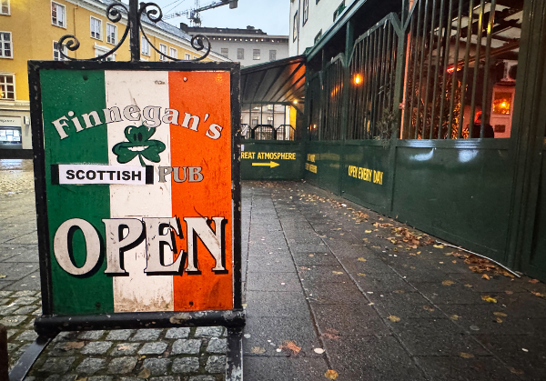 Aram Al-Zohairy ler litt når BA nevner hvordan nabopuben Finnegan’s, som The Old Irish Pub også eier, har teipet og skrevet «scottish pub» der det pleier å stå at den er irsk.