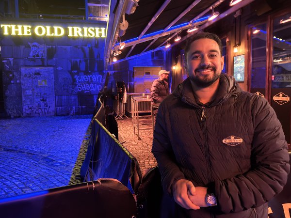 Aram Al-Zohairy ler litt når BA nevner hvordan nabopuben Finnegan’s, som The Old Irish Pub også eier, har teipet og skrevet «scottish pub» der det pleier å stå at den er irsk.