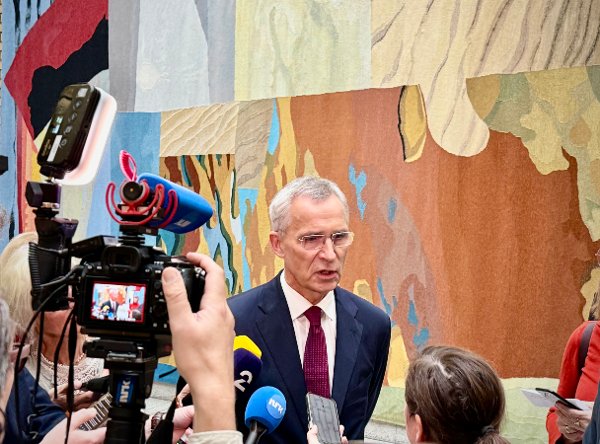 Jens Stoltenberg (Ap) møtte pressen torsdag etter redegjørelsen om Oljefondet i Stortinget.