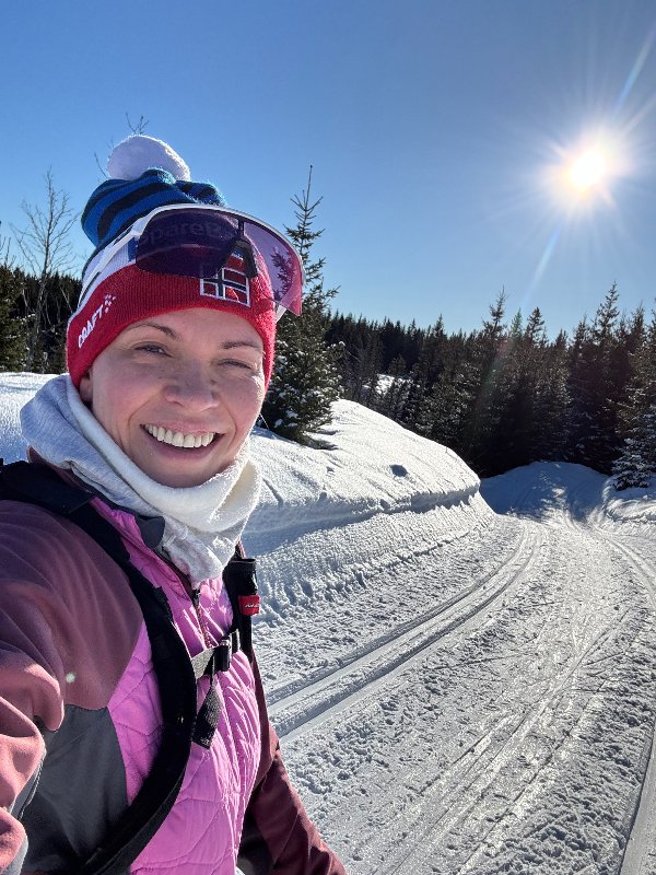 SKIGLAD: Nå kan hun la seg friste av en skitur i sola midt i arbeidsdagen.