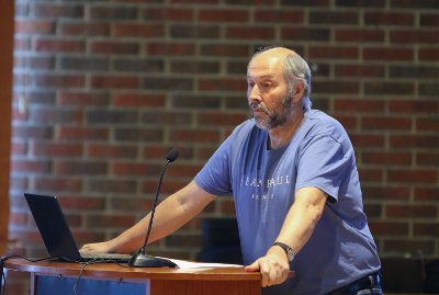 Hilmar Eliasson (V) på talarstolen i kommunestyremøtet torsdag.