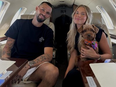 FLYTTER: Kristoffer Velde og samboer Malin Hauge. Her sammen med agent Imad El Hammichi.