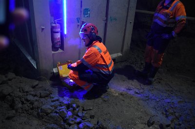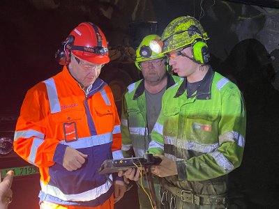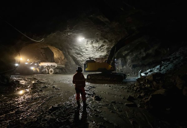 Det blir en del støv når 430 kubikkmeter med fjell sprenges bort, 1.800 meter inni tunnelen.