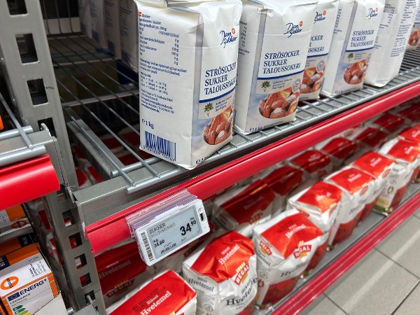 På Nordbysenteret er prisen derimot 17,95 svenske kroner for en en-kilos pakke med sukker. Dette er ingen tilbudspris, men den ordinære prisen.