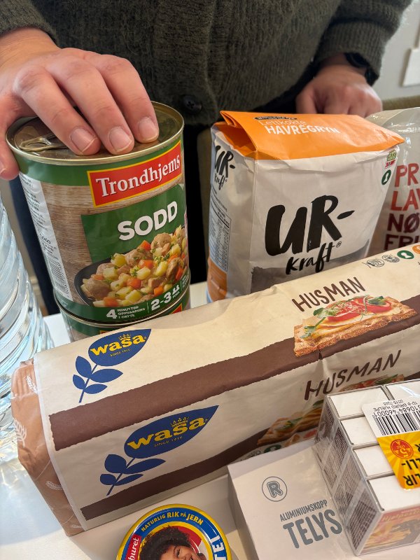 Deretter er det viktig med mat som kan oppbevares i romtemperatur. Eksempler på det er knekkebrød, havregryn og mat og pålegg på hermetikk.