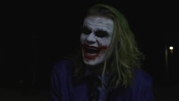 Der han sminkes og klær seg ut som Batman-karakteren «The Joker», og tar en tur ut i Manchesters gater for å skremme forbipasserende.