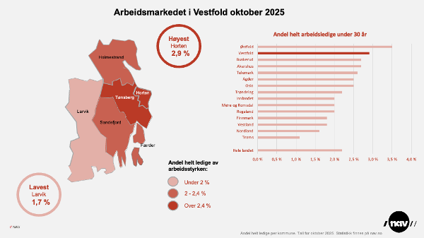 Nylig kom tall fra Nav som viste at andelen under 30 år som mottar uføretrygd har økt. Dette speiles også i tallene for arbeidsledighet, som for denne gruppen lå på 2,8 prosent i Vestfold. Dette er den nest høyeste ledigheten i landet, kun «slått» av Østfold.