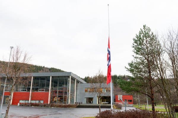 MARKERING: Utenfor Kippermoen ungdomsskole ble det flagget på halv stang mandag.