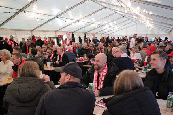 – Vi hadde en veldig fin ramme rundt kampen på lørdag. Da solgte klubben 4507 billetter, og vi merker at interessen er veldig stor for å få med seg matchball nummer to. Vi har fått en del spørsmål om hvor vi kan samles i Kongsvinger, og da hadde vi dette teltet tilgjengelig, sier Krabseth.
