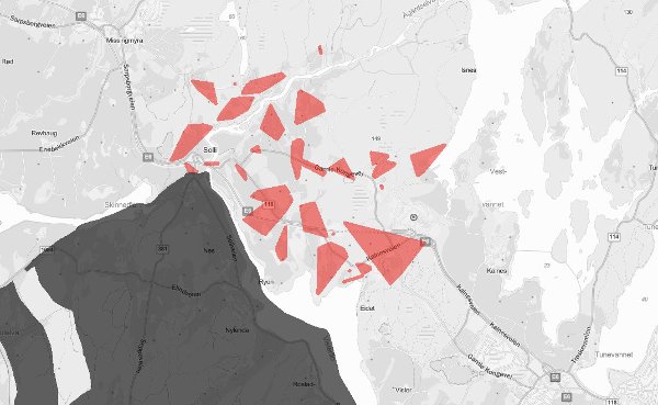 Kunder av Elvia i områdene markert med rødt er uten strøm.