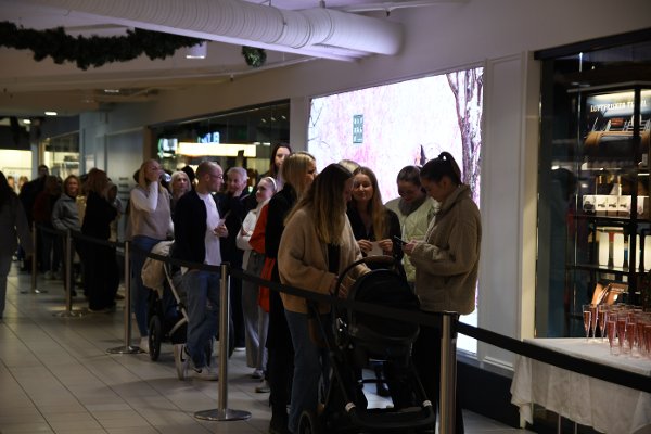 Butikken ble raskt fylt til randen, og køen fortsatte å vokse, noe som gjorde at kunder måtte vente i en organisert kø utenfor for å slippe inn puljevis. De første 100 som handlet fikk en eksklusiv goodiebag med produkter.