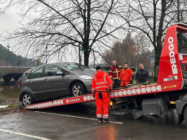 Politiet på stedet opplyste at bilen trolig hadde trillet ut i elva fra parkeringsplassen ved Coop-butikken.