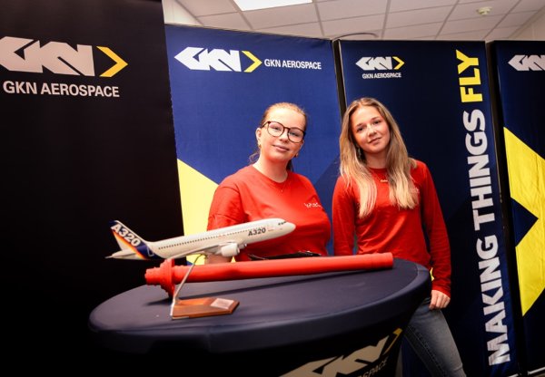 LÆRLINGER: Line Mølsted og Celin Lauvlid-Bastiansen, lærlinger hos GKN Aerospace. De er med å rekruttere enda flere ungdommer til jobb i lokal industri.