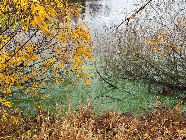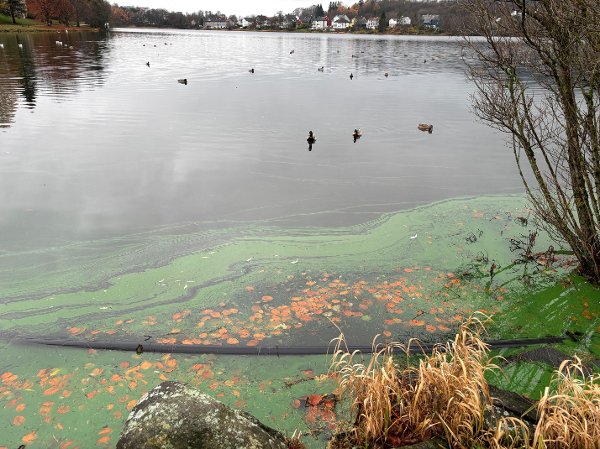 Det var nemlig en del grønn væske som rant i nordenden av Tveitevannet