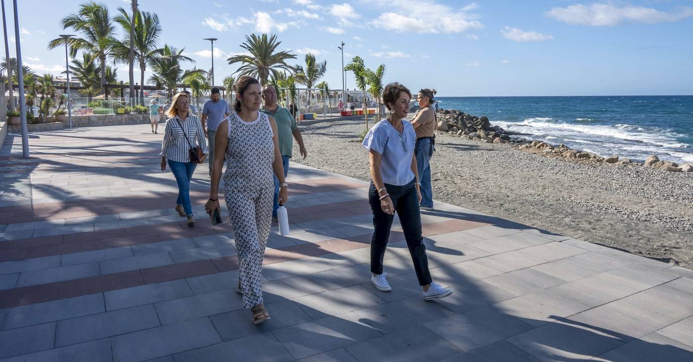 Mogáns ordfører, Onalia Bueno (til høyre), innviet den nye, 275 meter lange strekningen av promenaden på onsdag. Foto: Mogán kommune
