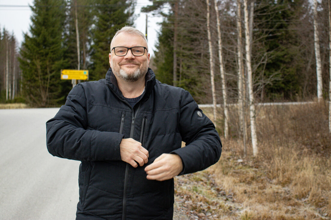 Nils Johansen, kommunedirektør i Eidskog møtte Filter Nyheter like ved hytta lørdag ettermiddag etter å ha bedt nazistene om å dra fra stedet. Foto: Filter Nyheter