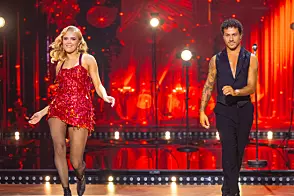 I BAKKEN: Under øving til lørdagens «Skal vi danse»-sending, går dansepartneren til Trygve Bennetsen, Ida Amy Sund, i bakken. Video: Thea Hope/ Rød Løper