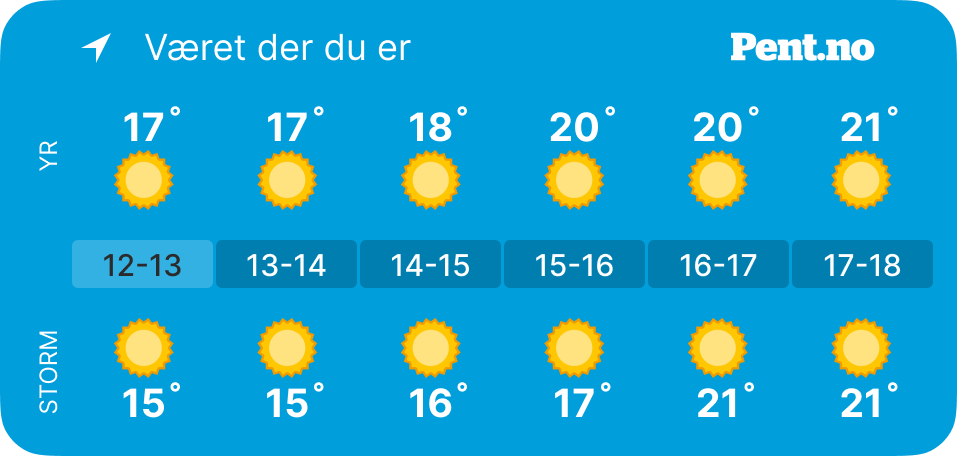 Fra Otta i nord til Kristiansand i sør er værkartet teppelagt med trillrunde gule symboler flere dager den kommende uken: Også kalt sol.