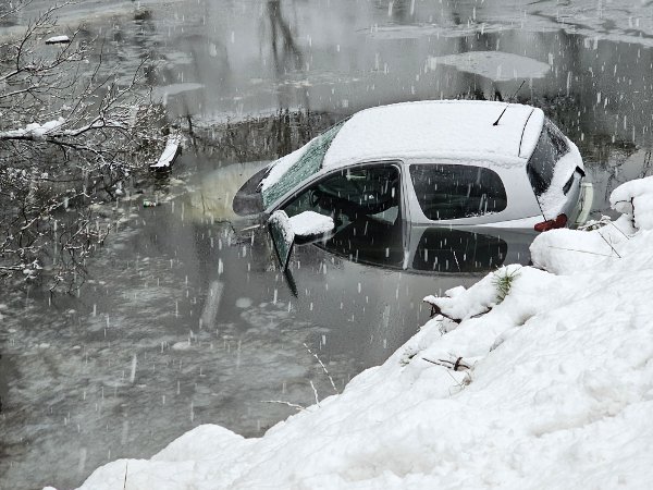 Bilen hadde kjørt av vegen og havnet i et lite vatn.